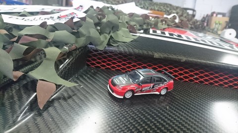 Voiture miniature représentant la Mustang Uniroyal du championnat de France
